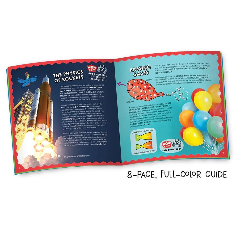 Blast off to hilarious science fun with your own high-flying air-powered rocket kit.